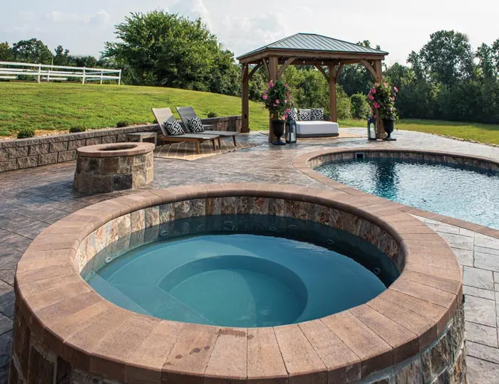Enhance your backyard oasis with Leisure Pools‘s range of fiberglass spas & tanning ledges. Pool and spa combinations are popular backyard options. While many designs in the Leisure Pools range feature integrated spas, stand alone spas offer additional benefits. Spill-over spas can be positioned nearby your pool to create a calming, natural waterfall effect. When installed away from the pool, stand alone spas create an additional entertainment space.