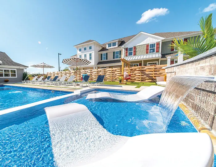 The generously oversized surface of this extra-wide tanning ledge provides ample space for lounge chairs, sun bathing and children’s play activities. Available Spill Over options serve to create the calming sound of cascading water as it flows into your pool.